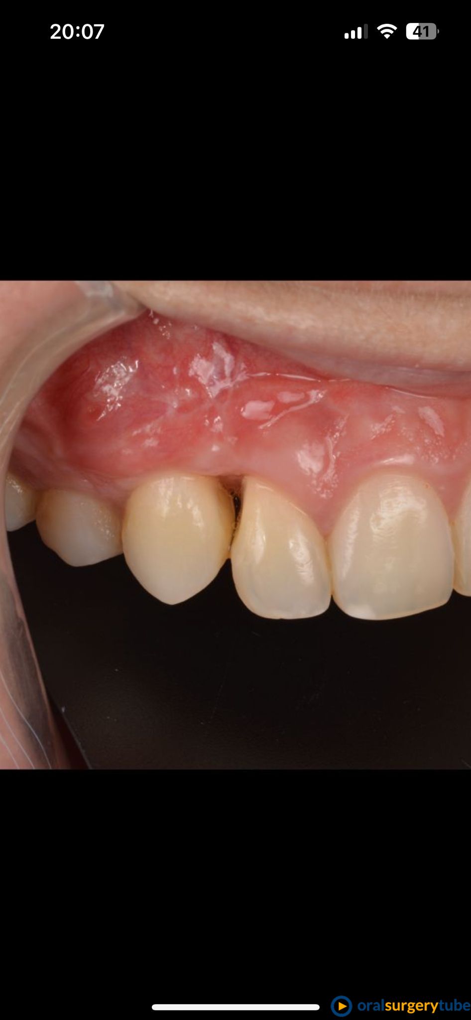Pues muchas gracias, le hicimos fotos sí, las comparto en breve. Segundo, levantar más la papila para facilitar la cirugía hubiera comprometido el aporte vascular ( irrigación terminal de la papila, que además tenía q nutrir la parte vestibular); y respecto a la chincheta, ahí se queda, si molesta algún día ya se quitará. La verdad q estoy muy orgulloso del caso, a esta paciente le iban a quitar los dos dientes, ella está encantada. Muchas gracias por tu comentario sobre la finura. Muchas veces pienso q los compañeros me tienen por muy invasivo, cuando no lo soy en absoluto.