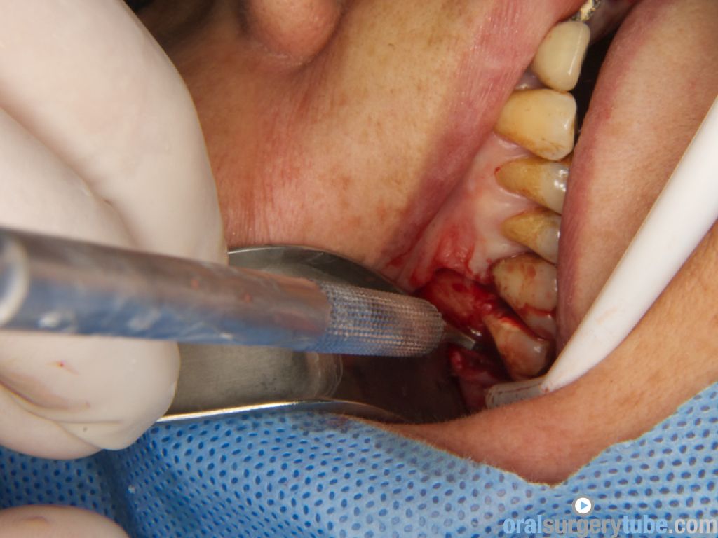 Muchas gracias Rafael y Tomas por los comentarios en cuanto a la toma del injerto de tuberosidad de comento que lo primero es realizar la medición del defecto y con un cincel que cumpla con estas medidas realizar la toma , yo personalmente realizo una descarga vestibular a la altura del primer o segundo molar dependiendo del paciente y el acceso al sitio que me permita , luego con el cincel seleccionado desde esta misma direccion realizo la toma del injerto , obviamente previo a todo analizo la zona en el cone beam para asegurarme no comprometer la pared del seno maxila o que no exista algun tercer molar que no me permita realizar la tecnica . te adjunto una foto , es de otro caso en el que expuse ahora por la apertura del paciente me costo mucho obtener una foto en buenas condiciones de esta etapa , y no use ningun tipo de membrana de colageno