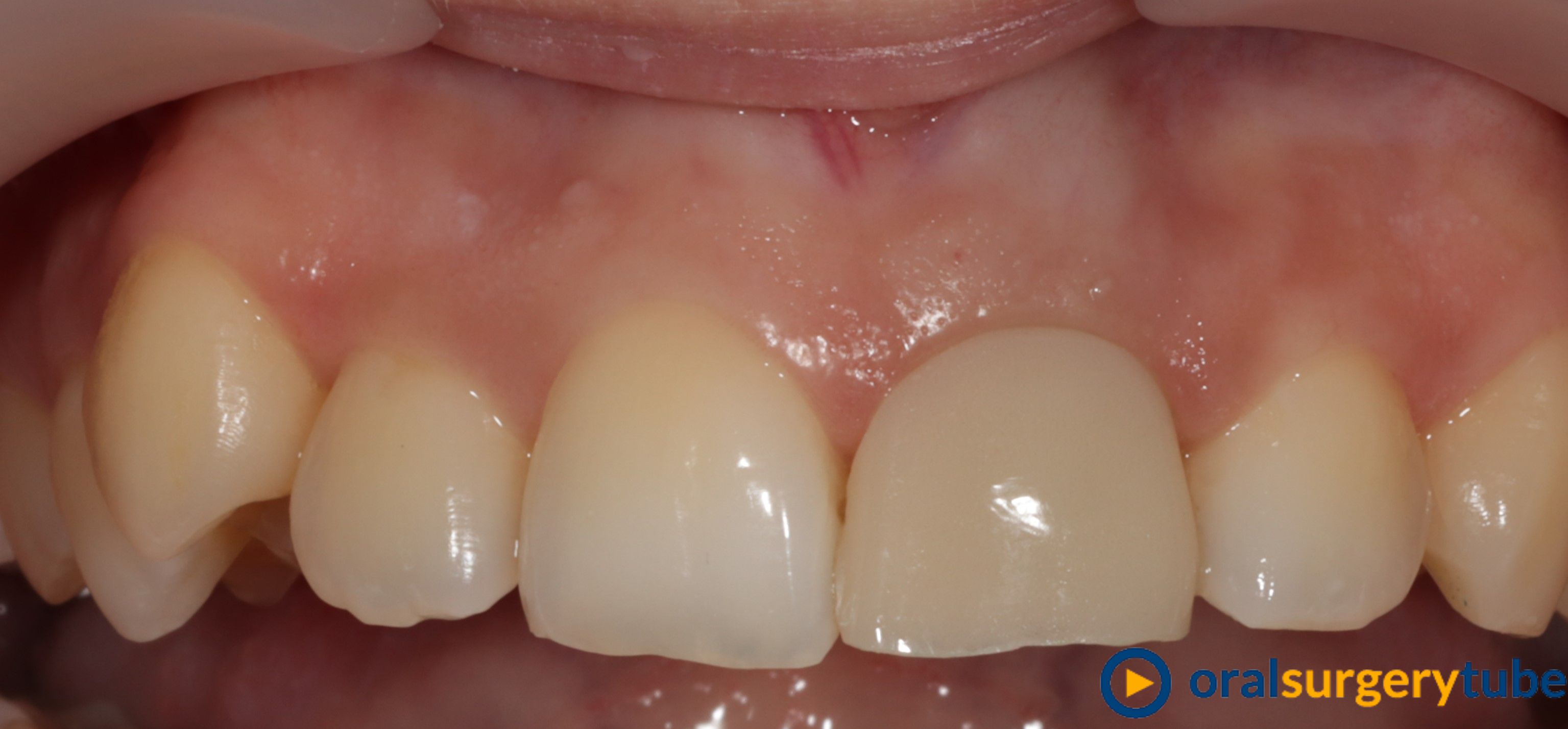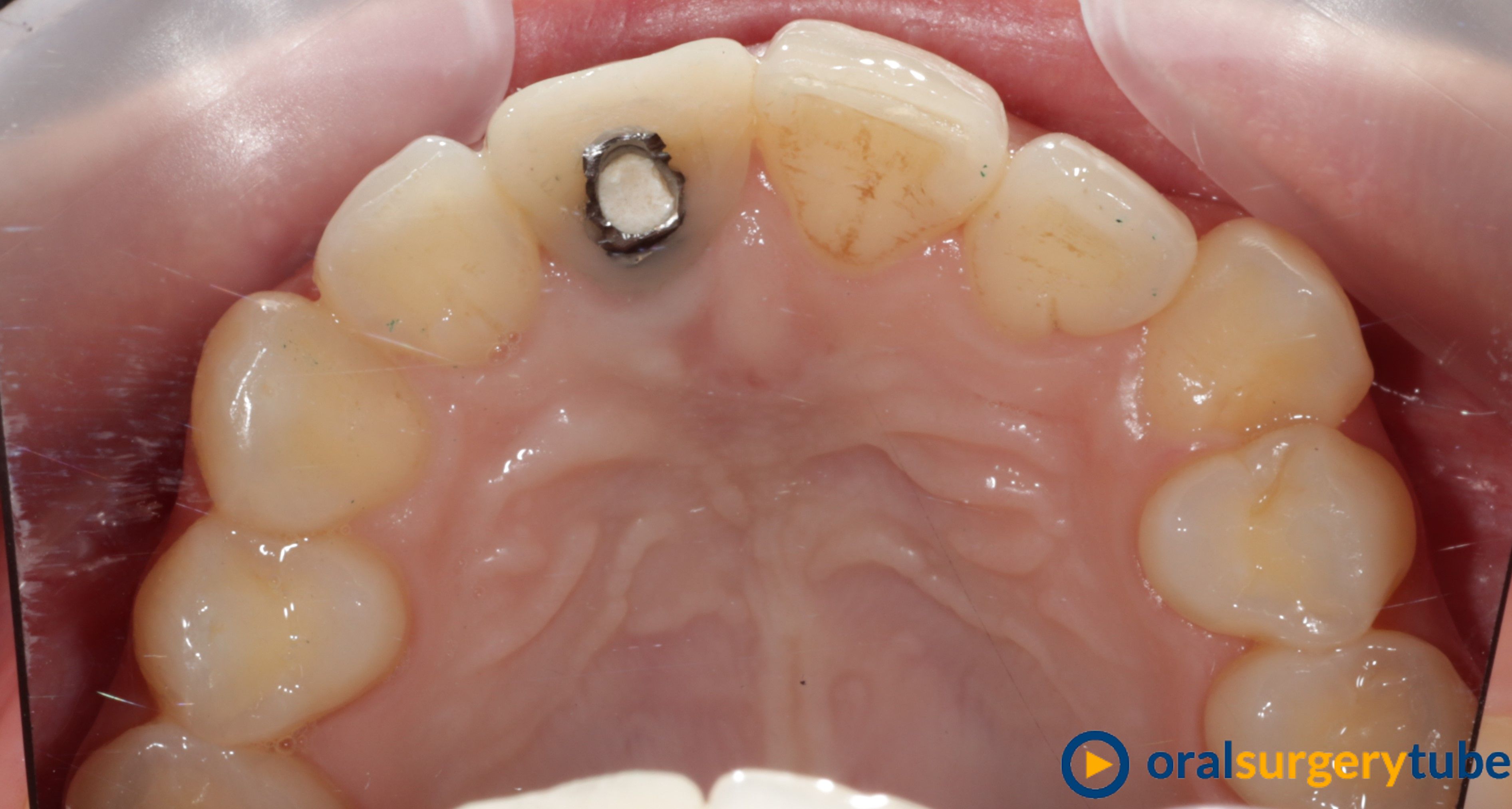 Chica joven de unos 30 años con el 21 con fracasos de endo y reendo debido a una fisura palatina o un surco palatoradicular, en que se decide hacer la extración con shocket shield , relleno de la fenestración palatina con bioss collagen y una carga inmediata al ser torque mayo de 40N, corona se libera totalmende de olcusion y excursivas. La paciente nota desde el inicio muy poca molestia, solo algo de presión en los dientes y nariz. Y lo que más de mosquea, sensación de palpitación (leve) no es como una pulpar, en la encia palatina, y solo ahi. Al hacer movimientos con la cabeza, agacharse..etc...esfuerzos, y la molestia cesa o es casi nada, cuando esta en reposo, y de noche...no hay más clínica que esa.