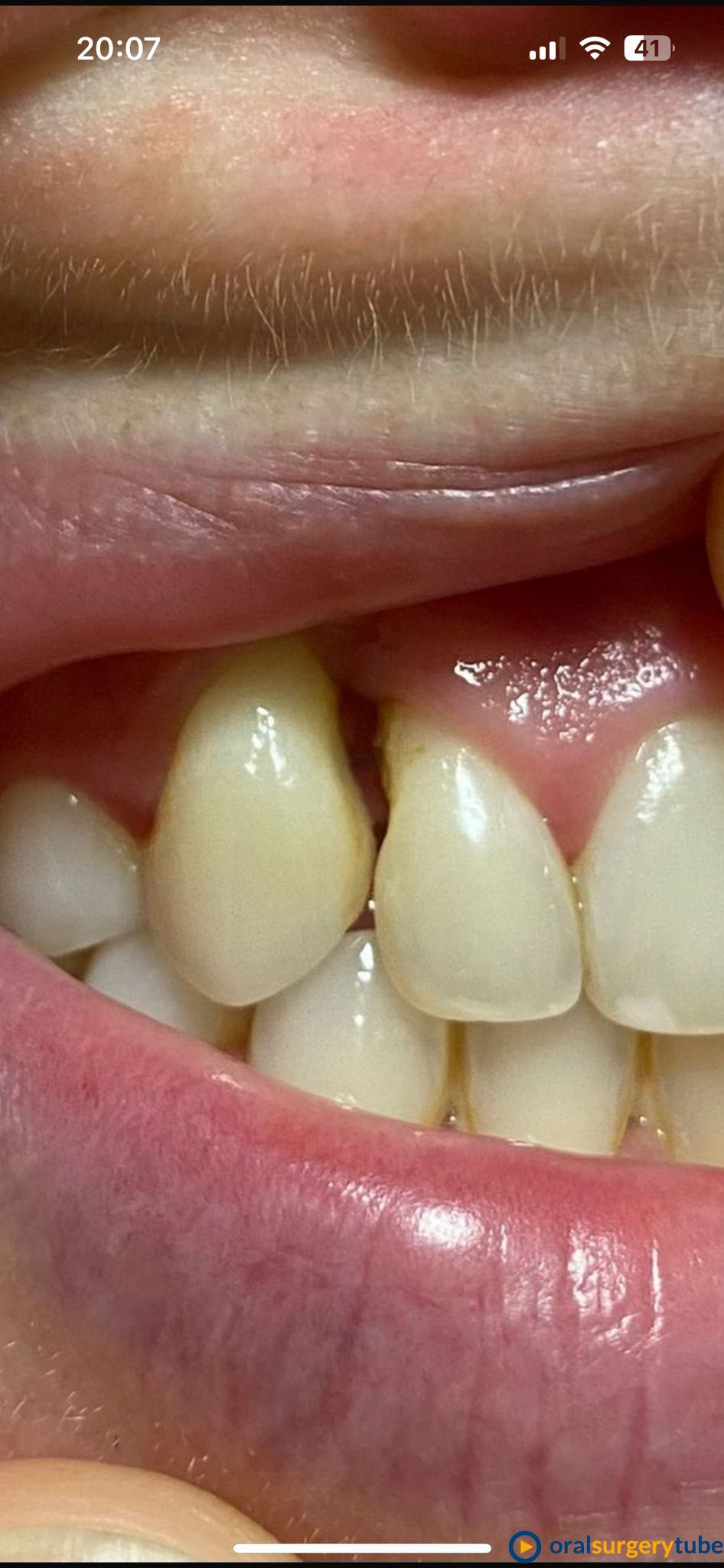 Pues muchas gracias, le hicimos fotos sí, las comparto en breve. Segundo, levantar más la papila para facilitar la cirugía hubiera comprometido el aporte vascular ( irrigación terminal de la papila, que además tenía q nutrir la parte vestibular); y respecto a la chincheta, ahí se queda, si molesta algún día ya se quitará. La verdad q estoy muy orgulloso del caso, a esta paciente le iban a quitar los dos dientes, ella está encantada. Muchas gracias por tu comentario sobre la finura. Muchas veces pienso q los compañeros me tienen por muy invasivo, cuando no lo soy en absoluto.